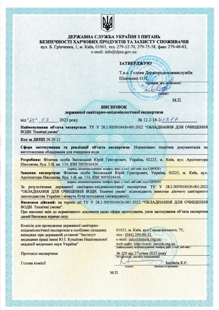 інженерний підбір систем під конкретну воду та об’єкт;